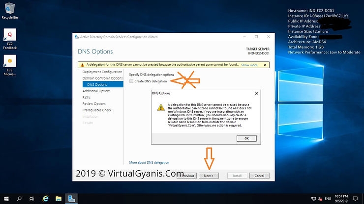 Since we have configured an AD-integrated DNS server, you can ignore the DNS Delegation warning as shown in the below screen. Then, click Next to continue.