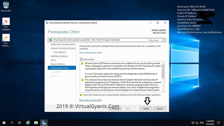 Once prerequisite checks completed successfully, it will enable/highlight the Install option. Then, click on Install button to start the installation process.